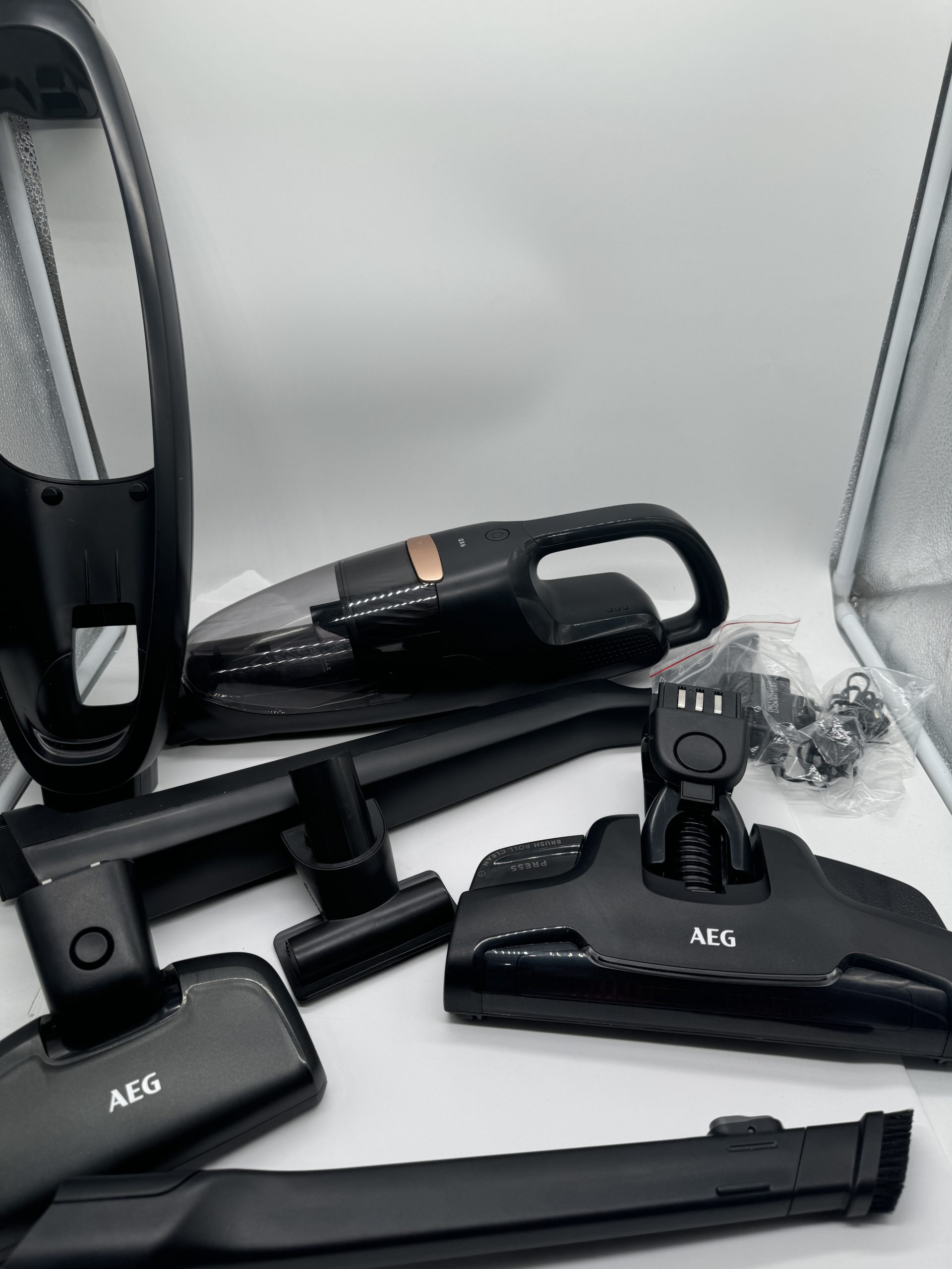 AEG QX6-1-45AN Akku Staubsauger kabellos / Staubsauger beutellos / leise / Handstaubsauger akku / 45 min Laufzeit / leicht / Hartboden / 2in1 / Tierhaare / Hund / Katze / Teppich / Auto / grau